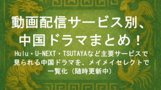 Hulu、U-NEXT、TSUTAYAなどで配信中の中国ドラマを、メイメイがブログで紹介した作品を中心に一覧でまとめました。随時更新中。視聴先を探すときに便利です。